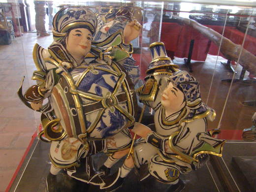 剪黏藝術,取材廢棄的酒瓶、陶罐、花瓶,在他一雙巧手剪黏出各種