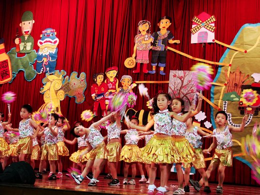 主題推出十場歌舞表演,四百多小朋友盛裝打扮輪番上台,台下一千