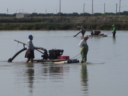 太快,造成水質混濁會危及文蛤生長,在台南縣沿海常可見有養殖文
