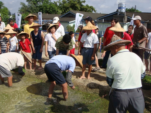 藝班的學員們用心的在農場的一角栽種水稻,將來的除草、施肥、收