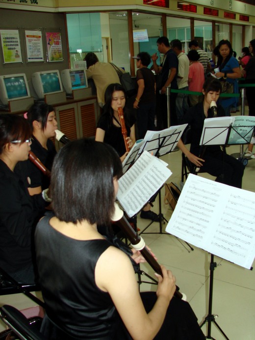 瓦第、韓德爾等古典名家作品,吸引許多掛號、領藥民眾好奇駐足,