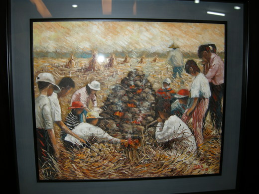 陳泰元畫的新化鎮瓜瓜園焢土窯,親子一起焢窯,呈現農村景像,勾