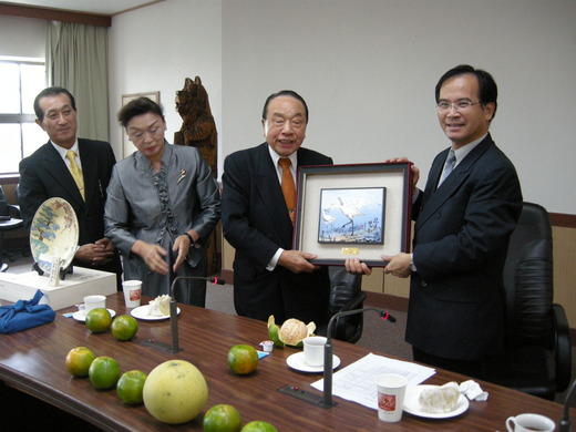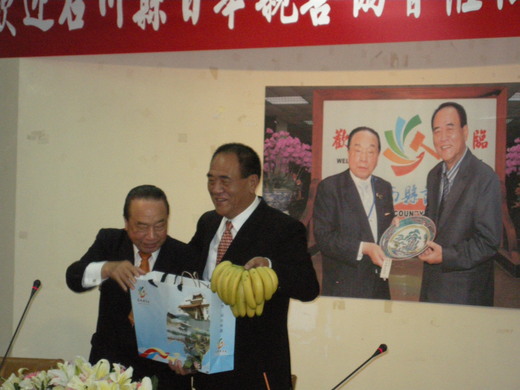 長井賢誓感謝蘇煥智的熱情接待,他說,前天獲頒台南縣榮譽縣民讓