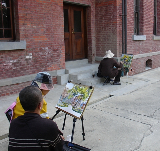 、巴洛克式街景一一融入作品中,這群遠來的藝術創作者街頭寫生,