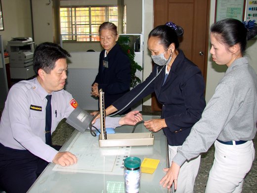 慈濟台南分會志工媽媽每月至少兩天,到歸仁警分局為員警量測血壓