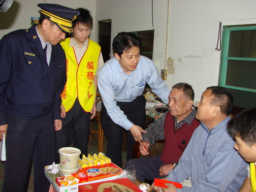 甘士照,在除夕前一天,與志工們一起探訪轄區獨居老人及弱勢家庭