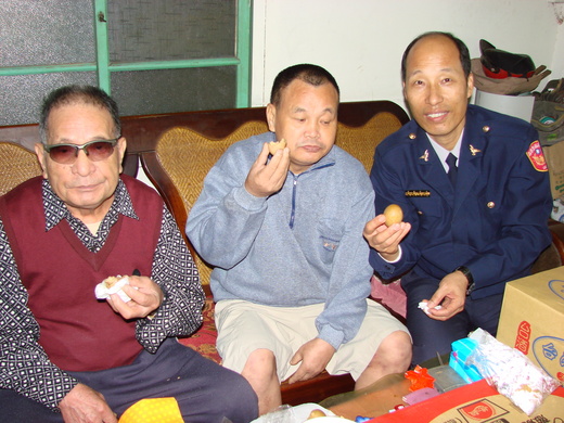 昨天春節送暖給弱勢及獨居老人,知義派出所長廖世華準備自己滷製