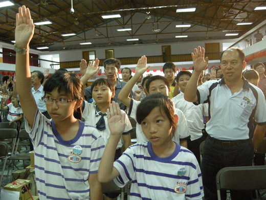 個省水閥給縣內169所小學,小小水公民宣誓善盡維護水資源責任。