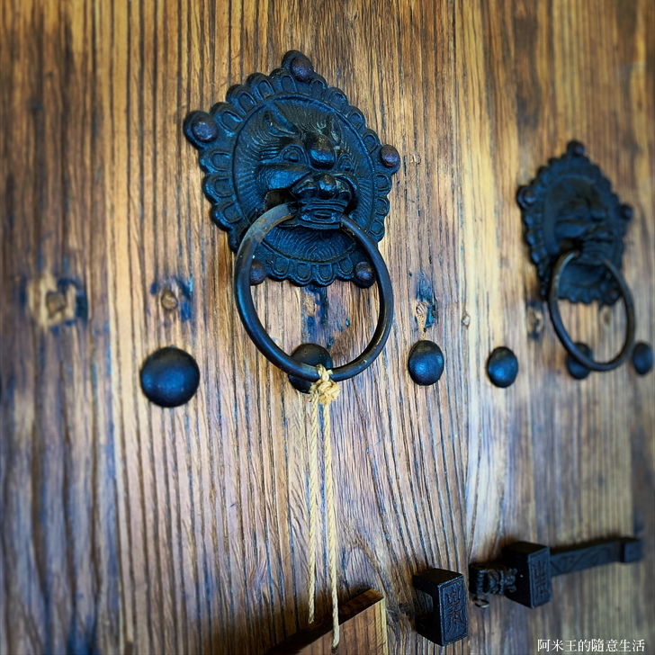 ⇊燔羽的大門是以一對古樸的獅頭門環,作為敲門的工具,獅頭門環沉甸甸地鑲嵌在厚實的大門上,讓阿米王推門瞬間,彷彿像是穿越到了古宅或宮殿!