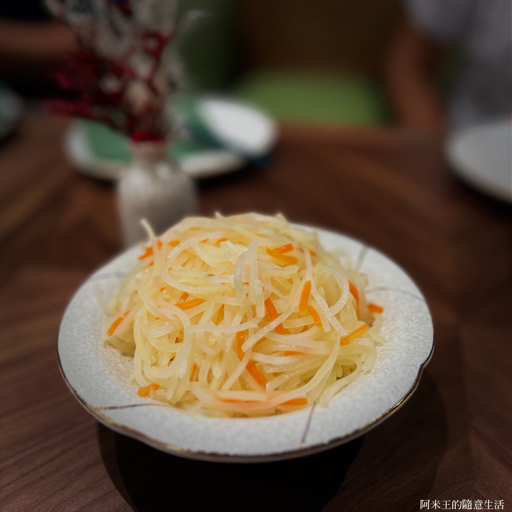 ⇊「嗆拌土豆絲」,微酸開胃,絲絲入扣,為烤鴨味蕾揭開一場中式饗宴的序幕。