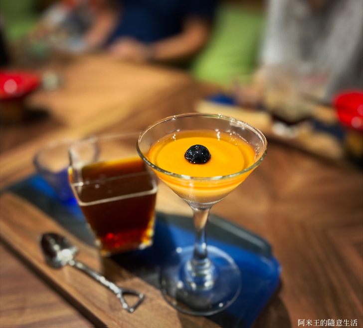⇊接著我們又忍不住好奇心點了「豌豆蓉馬丁尼」,啜飲時,豌豆蓉的綿密口感在舌尖輕舞,尾韻悠長,帶出淡淡的堅果餘香與馬丁尼的乾爽回甘,增添一抹清冽的層次感。