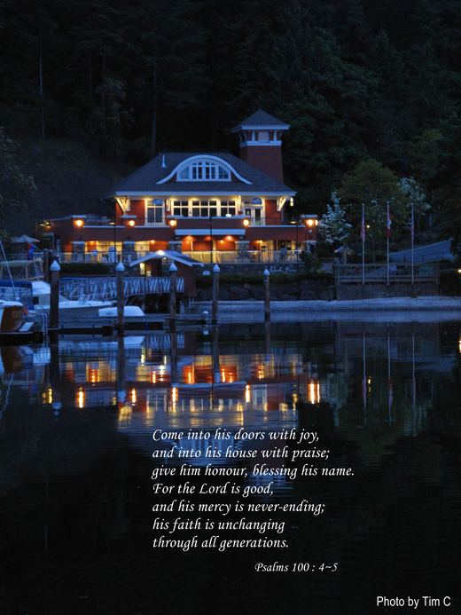 當稱謝進入他的門,當讚美進入他的院‧當感謝他,稱頌他的名‧