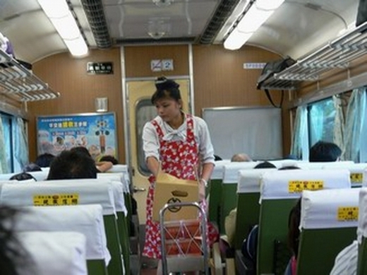 列車離開枋寮內獅車站,進入大武山區前,隨車女服務生又出現在車廂裡