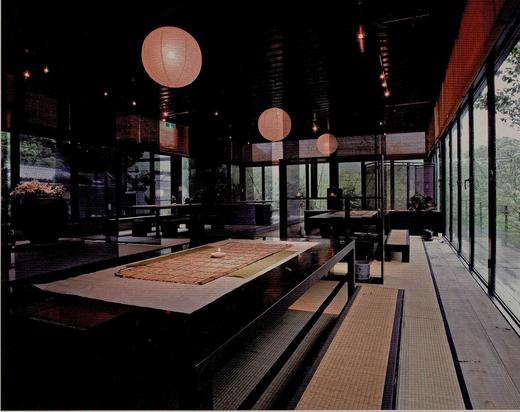 隔間裡,一株比人高的山櫻花,插在玄色的埔裡大水缸,有餘的舒展枝葉、綻放嬌妍。櫻花樹下,盞盞小燭的細細焰火微微顫動。空間裡,清雅悠揚的古琴曲以〈高山流水〉與窗外青山翠谷對答吟唱,一種中國文人放情山水的胸懷,令來人自然放下平日緊聳的雙肩。很難想像,這裡原本是一個卡拉OK聲喧的土雞城。