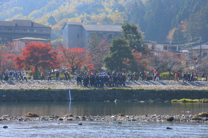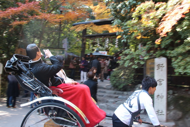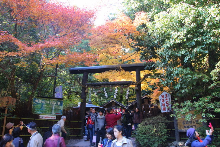 途經野宮神社,只見一大群遊客爭觀紅葉擠爆其中。