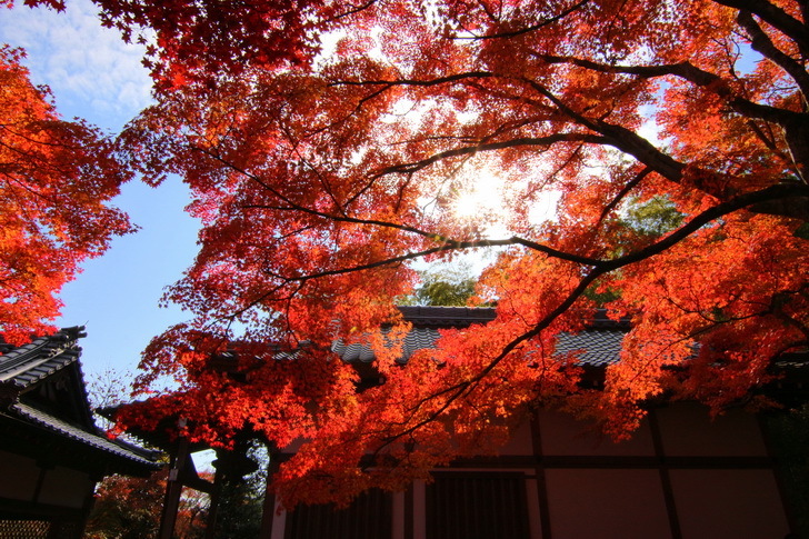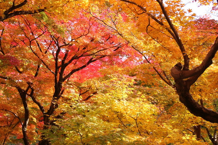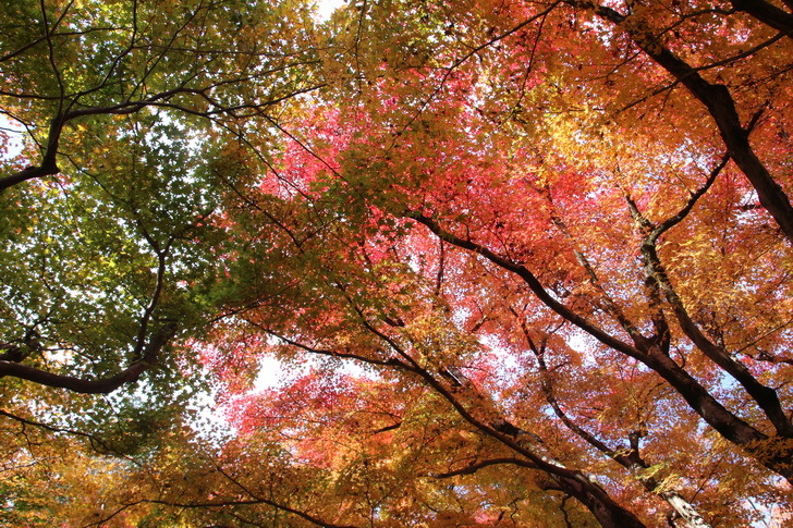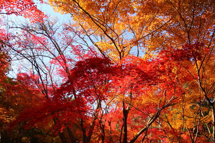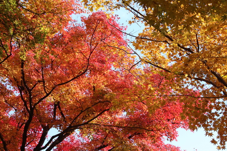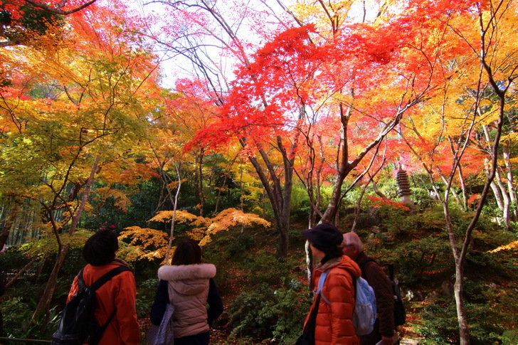 在常寂光寺抬頭仰望青黃紅綠交錯和湛藍的天空,目不暇給的五彩繽紛讓人不禁讚嘆,這等絕世美景有幸能夠親眼看見,當真是旅途中最美好的一刻時光。