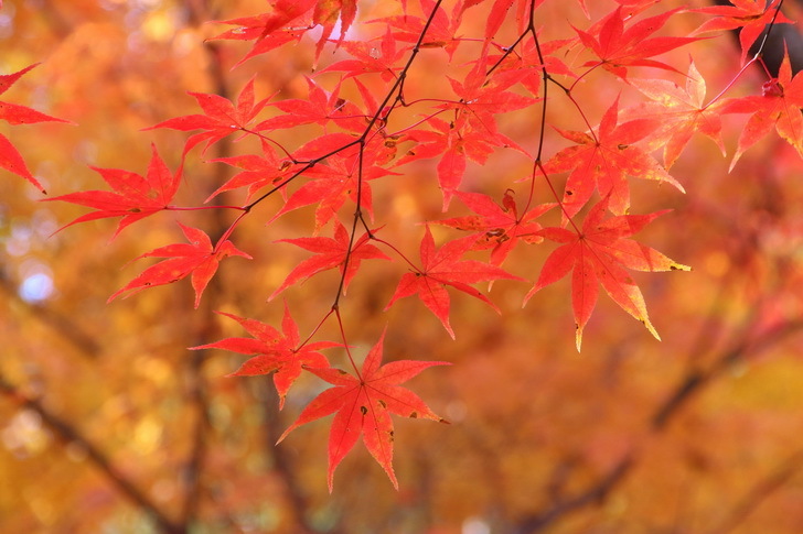 這一屁股坐下去後,我還真不想起身。才坐下,一陣山嵐吹來,眼前飄落一場紅葉雨。一時驚嘆歡呼聲四起,是超越想像落英紛飛的美景畫面。