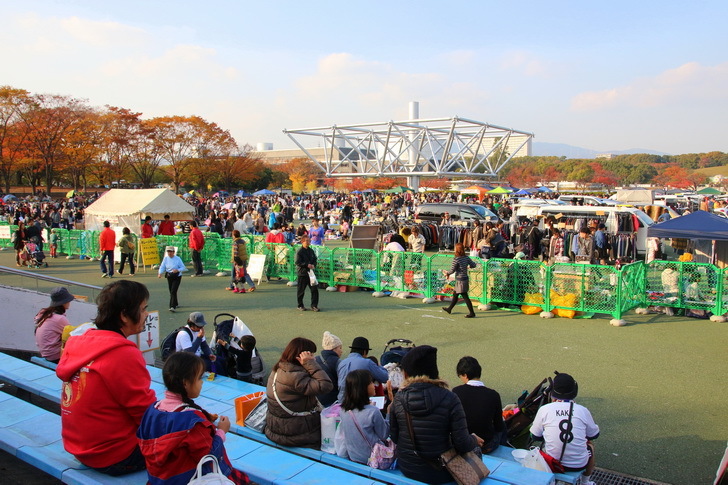 造訪的這個週末,太陽之塔後的足球場成了跳蚤市場,上千個各式各樣的攤位,販售琳瑯滿目的商品。不過,並非”無料”,需要購票(入料金是350日幣/每人)才可入場。