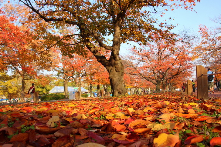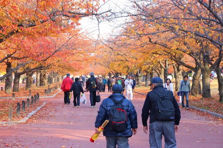 其實並沒有不同,只是地面上的柏油舖設成紅色,秋天望過去,看來一片紅似海,好不壯觀。(日本人造景功夫真是有一套!)而兩旁的多栽種櫻花樹,可以想像春季櫻花綻放時美麗的花海隧道景觀。