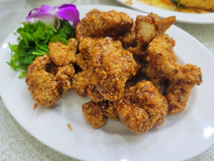 酥脆的外皮,甜而不膩,入口滋味讓人難忘。特別令我印象深刻的是前一陣子因豬瘟,全台豬肉停售時,他們還以雞肉來製作這道菜,口感更是出奇的美味。