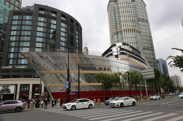 2025年6月28日全球第一艘LV巨輪「路易號」在上海靜安區南京西路啟用。「路易號」長114.5公尺、高30公尺路易號,迅速成為上海熱門打卡新地標。