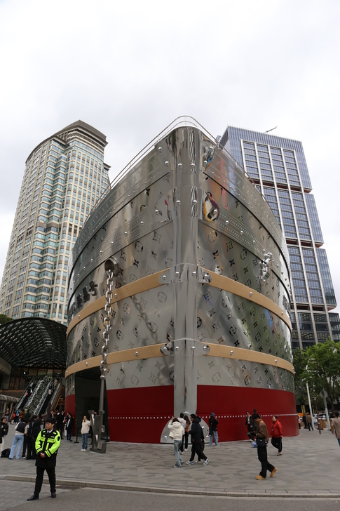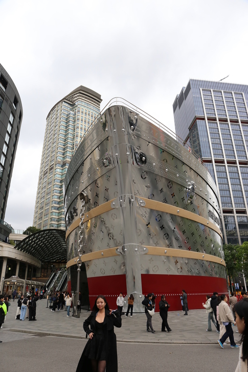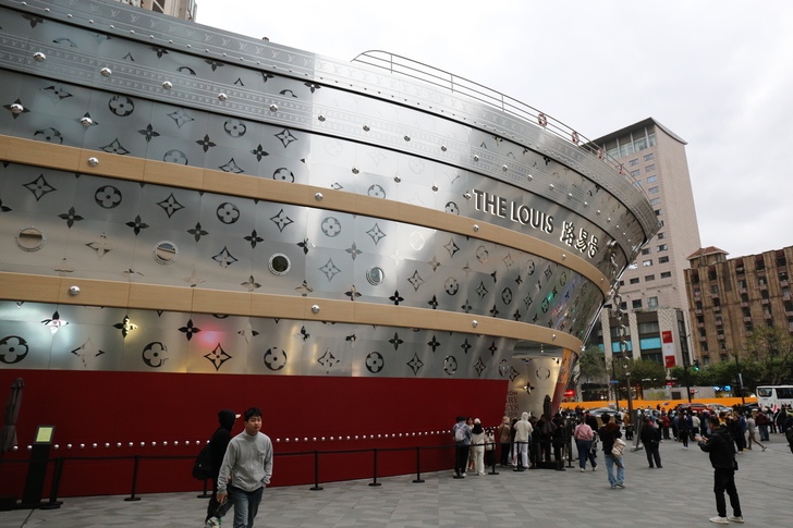 由日本建築師重松象平和OMA建築事務所打造的「路易號」旗艦店The Louis,以金屬 Monogram圖案面板包裹3層建築體,層層堆疊如超大行李箱,宛如停靠在上海靜安區的豪華郵輪。