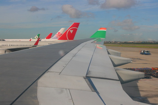 清晨坐著搖搖晃晃的巴士往機場去,望著天空飄著雨,車窗鏡面上映著是我失望的神情。突然,我的眼睛一亮。是一道彩虹。好大的一道彩虹!是我從小到現在看過最大的一道彩虹。旅行中總是充滿了意外的驚奇,相信這次也是一樣的。