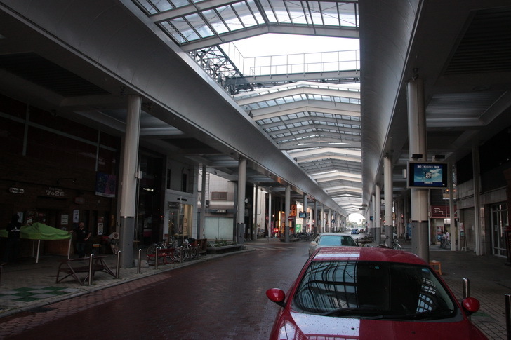 辦理完入住手續,將小車停放好(入住房客一日500円)。拖行李進房間後 我們開始在市區閒逛。