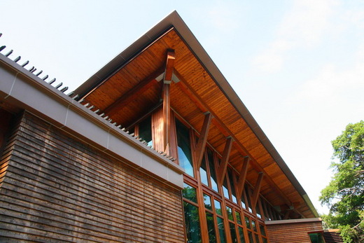 初次看到這圖書館時,很難不為之驚豔感動!也讓我想到去年前往沖繩旅遊前做功課所看到的「名護市役所」。不過,那棟造型獨特贏得日本建築金賞大獎的”綠建築”是採用磚造,而台北市立圖書館北投分館則是以鋼骨和木造。