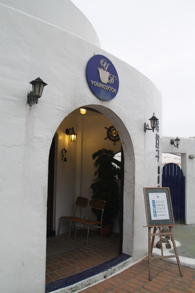 吃飽後,再上淡金公路,來到洋荳子咖啡屋,一面欣賞海景,一邊喝下午茶,體驗台式的希臘風情。
