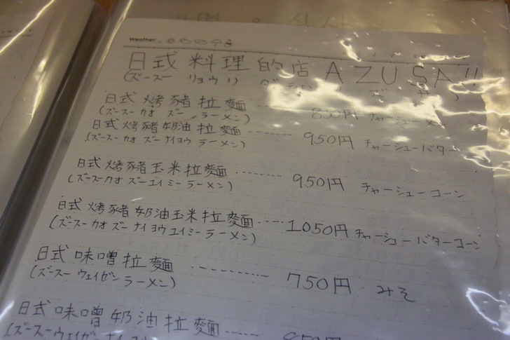為了表示出我的誠意,我把這份菜單翻譯成繁體中文,如果日後有朋友順道前往「食事の店あずさ」用餐,若不嫌麻煩,可以直接將其列印出來,交付老闆使用。
