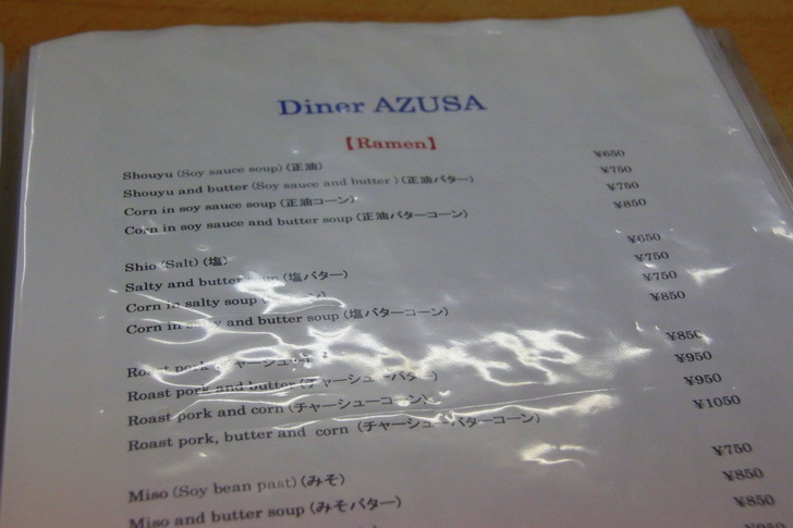結果,她一開口就是推薦「味心」。我告訴她「味心」已經休息了。她想了一下,推薦了我另外一間餐廳「食事の店あずさ」,她說她自己常去那裡用餐,特別向我們推薦他們的味噌拉麵。