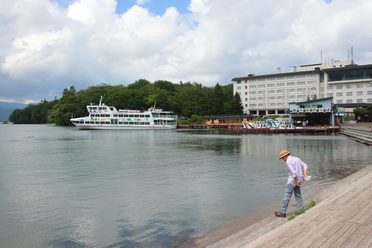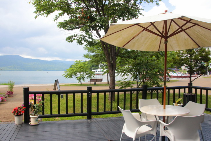 飽餐後,從旁邊的小路就可來到阿寒湖畔。