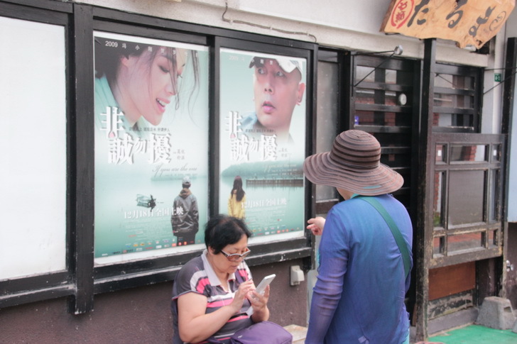 這間爐端燒於晚間6點之後才開始營業,停好車後,再散步過來,只見門口來了一團大陸觀光客爭相拍照留念,儼然成為中國大陸旅行團的熱門觀光景點。畢竟,「非誠勿擾」也曾經是大陸影史上最賣座的電影。