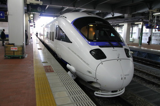 一早8點坐上開往長崎的電車かもめ7(海鷗7號)。只是這隻”海鷗”似乎是用”音速號”sonic來代替,雖然不是正牌的”海鷗”,但同屬JR九州885系電車,與台鐵往返台北到花蓮之間的”太魯閣號”系出同門。
