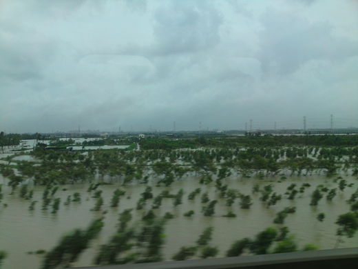 經歷兩天兩夜的狂風暴雨,所幸家中除了我房間牆壁滲水外,都平安無事。星期一一大早,道路積水才開始退去,我就得趕去搭高鐵了!因為台北縣市可沒有放颱風假!