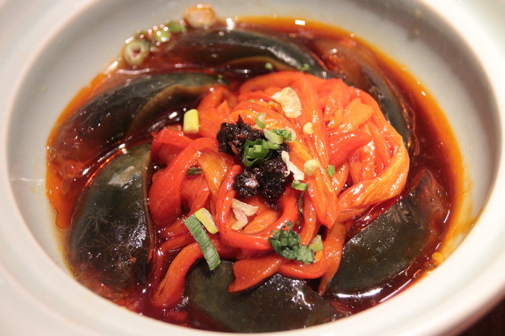 這尾應該是大頭鰱,上面舖滿綠色的山椒,氣味嗆辣後勁十足,十個有九個喊辣。肉質倒算鮮嫩。