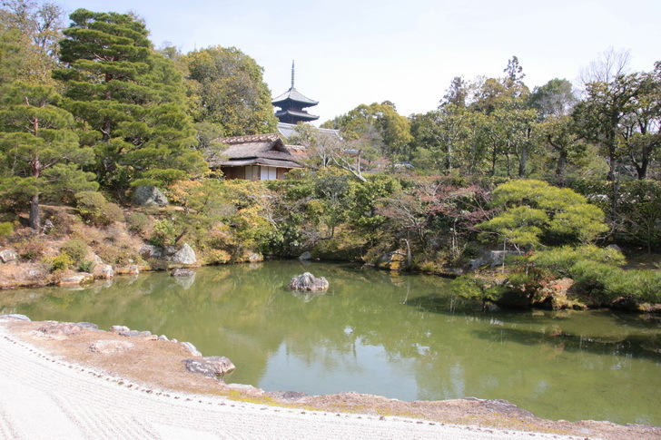 仁和寺、龍安寺、金閣寺在同一區域。如果想在同一天參訪,建議可以從地勢最高的金閣寺→龍安寺→仁和寺依序來參觀,不論是想徒步健行或搭乘交通工具都會比較順暢。這條路線也就是所謂的「京都掛絹之路」(京都きぬかけの路)。
