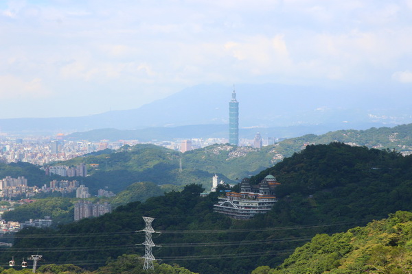 此次不必再放"殺"版面的超大全景圖了!左側那高高立起形如螃蟹的便是貓空纜車站;右側的Taipei 101依稀可認。