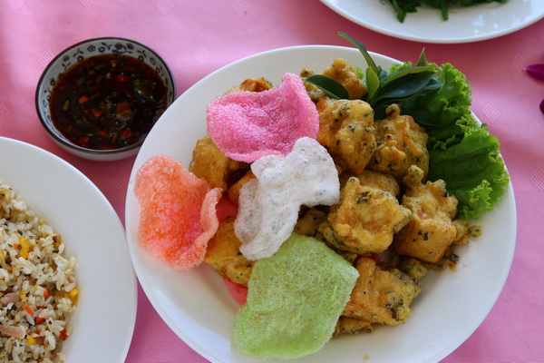 茶葉豆腐,酥脆外皮裡面裹是細嫩的豆腐,即使不沾醬都很美味。