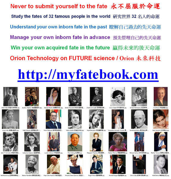 Never to submit yourself to the fate 永不屈服於命運 Study the fates of 32 famous people in the world 研究世界32名人的命運 http://myfatebook.com http://myfatedata.com International Job Opportunity 國際工作機會