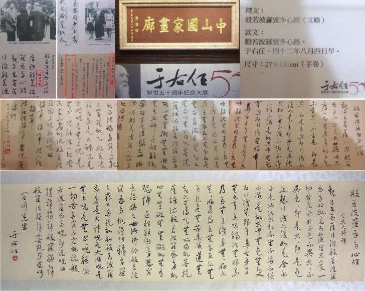 The historical documents exhibited in the Yu Youren Calligraphy Grand Display held in the Taipei National Dr. Sun Yat-sen Memorial Hall prove the authenticity of the 《The Buddhist Sutra of the Heart of Prajna calligraphy handscroll》 by Yu Youren in 1953