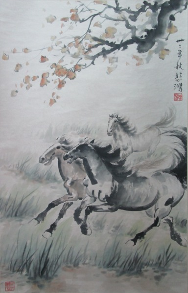 徐悲鴻1943年秋作李可染題引首《三駿圖》