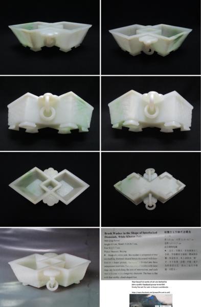 A Hetian White Jade carved “BRUSH WASHER” in the shape of Interlocked Diamonds Qianlong Period (1736-1795) Qing Dynasty 大清乾隆年製和闐白玉雕方勝式活環洗