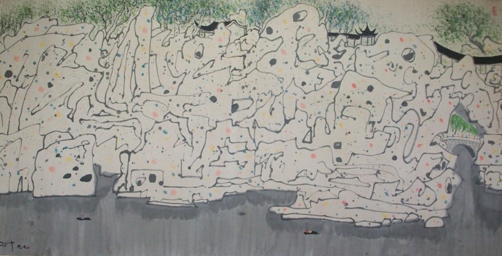 Wu Guanzhong was excellent to paint those beauties of scenery by the complex combinations of dots and lines.