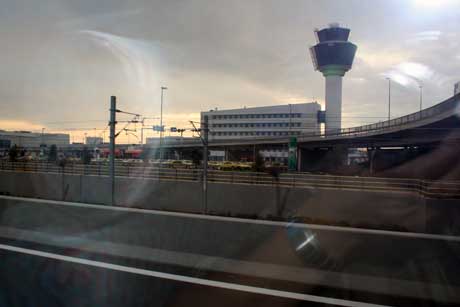 這是希臘因應2004奧運所新建的機場,出關後,07:30會齊當地導遊出發,車行匆匆,倉促間在巴士上就著玻璃窗搶拍一張。( 註 )