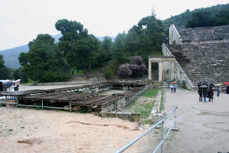 這裡以一座古希臘半圓形露天劇場著名,根據資料記載,設計者名叫小波利克雷多( Polykleitos the Younger ),其人相關資料可以在 Wikipedia 網路百科中查閱。