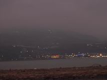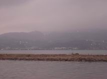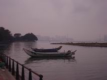 喔!回程時,新案媽媽很熱心地送我到捷運站,但已是紅橙橙的黃昏雲霞,錯過了圓滾滾的夕陽西下,不料卻意外得到一幅美極了的潑墨畫,還是張寬景的潑墨山水!這邊的那片樹林,對岸八里的霓虹燈,出海口緩行的渡輪,停泊一旁的雙舟;飄動在雲端上的層層散雲,暈染出自然天成的潑墨山水!好寬廣的一幅潑墨山水,使我情不自禁以左右180度的頸部範圍,貪戀地來回迷望著它。
