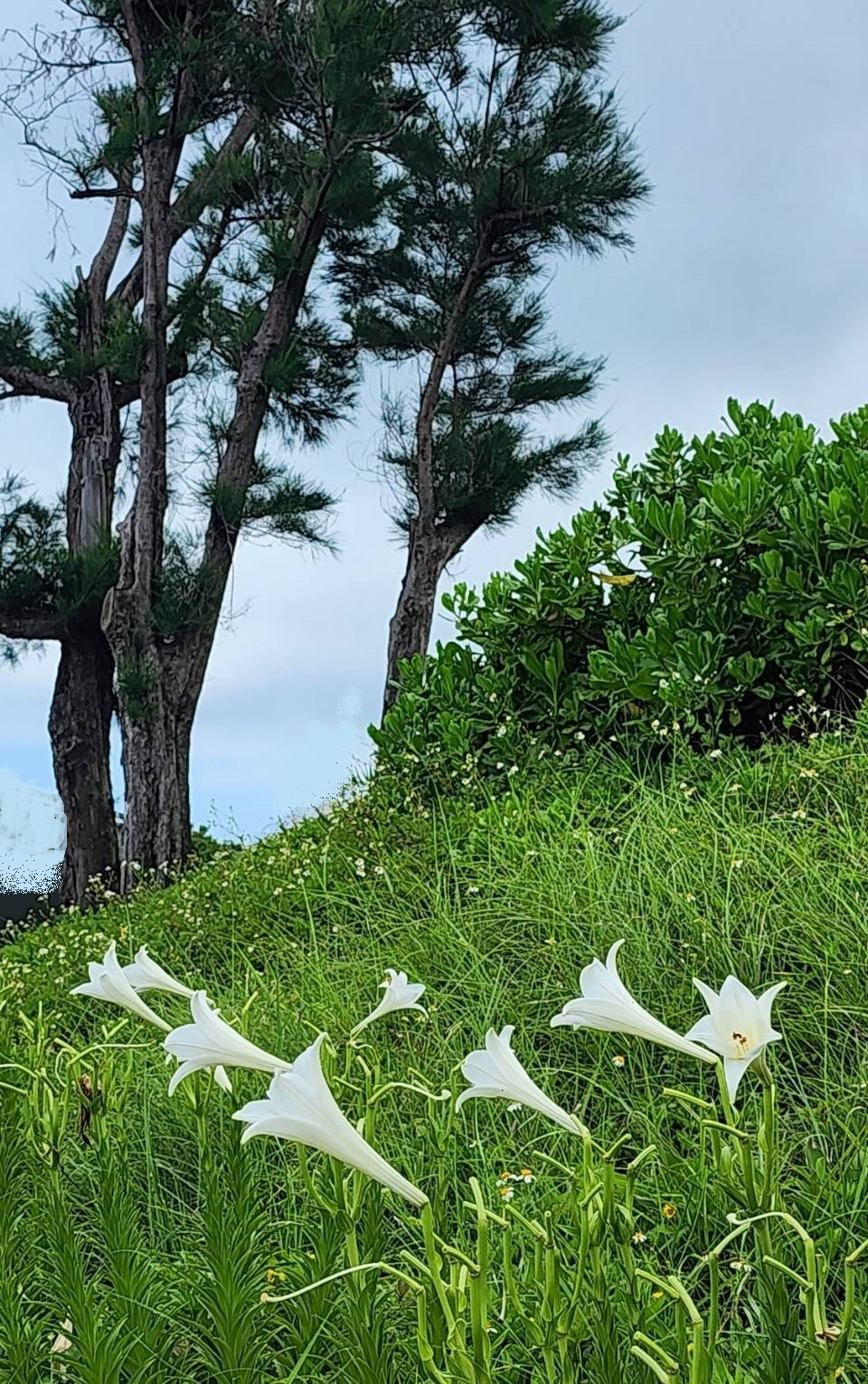 野百合之戀 農曆五月我常夢迴曩昔: 瓦屋上裊裊炊煙, 盛開的百合, 在翠綠的田野間, 在潺潺小溪畔。 與老父沉默相望, 兒時玩伴淚...