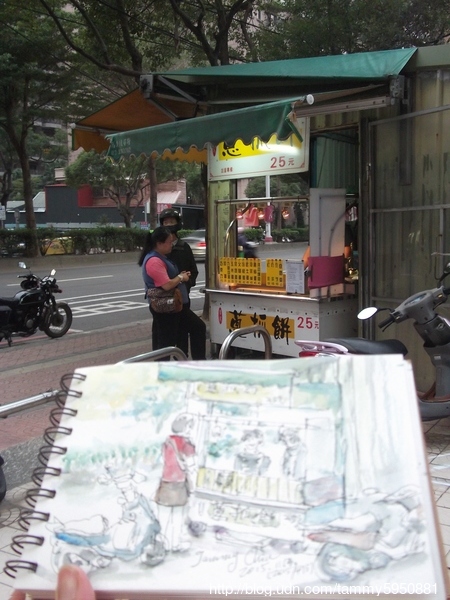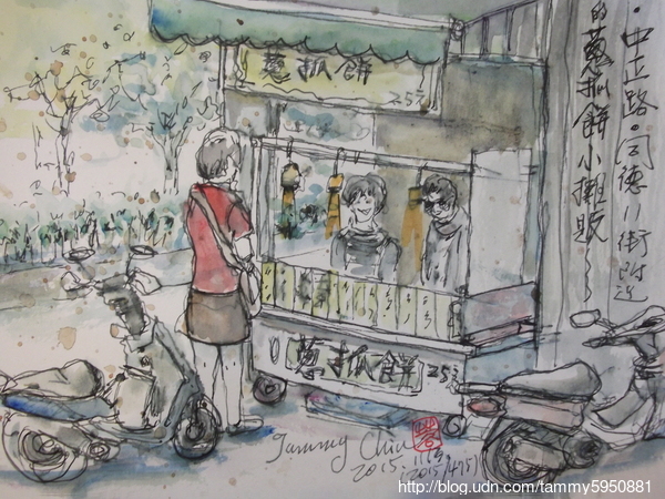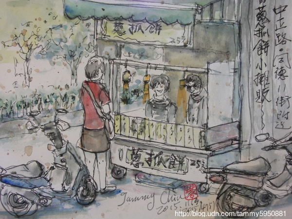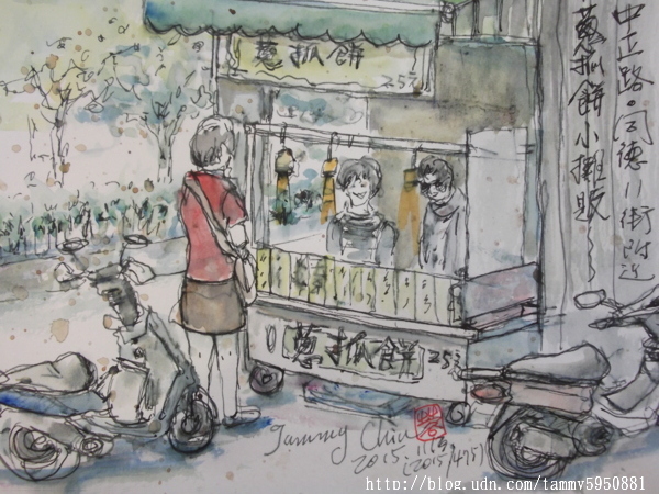 小蓉 / 繪圖攝影:【2015 / 475 淡彩速寫 :路邊街景 / 蔥抓餅小販】